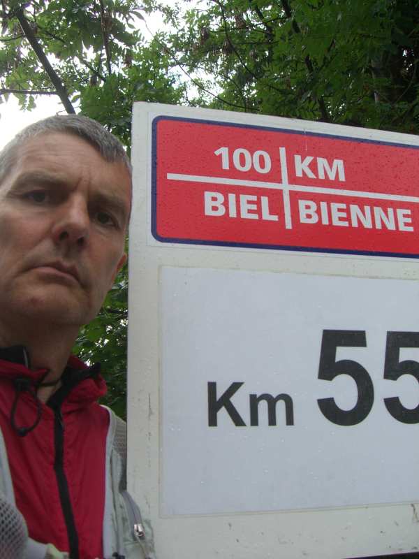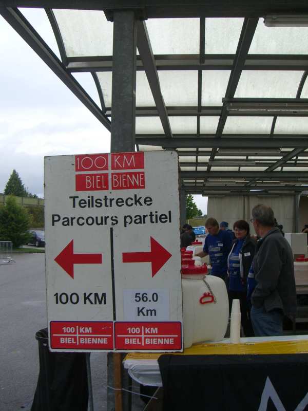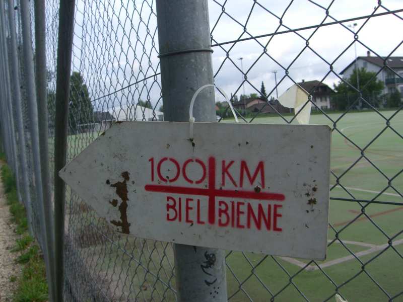Irgendwann war dann auch ich in Kirchberg. Ein Schild. Links die 100km, rechts die 56km Teilstrecke. Noch nie war mir ein rechts Abbiegen so schwer gefallen. Ich war nicht im Mindesten erschöpft. Das tat am meisten weh. Wenn ich einfach nur alle und kaputt bin und deswegen raus muss. Nun gut. Aber wegen Aua? Letztlich war es auf der Treppe auch schon so. Und nun erneut in Biel. Murks.