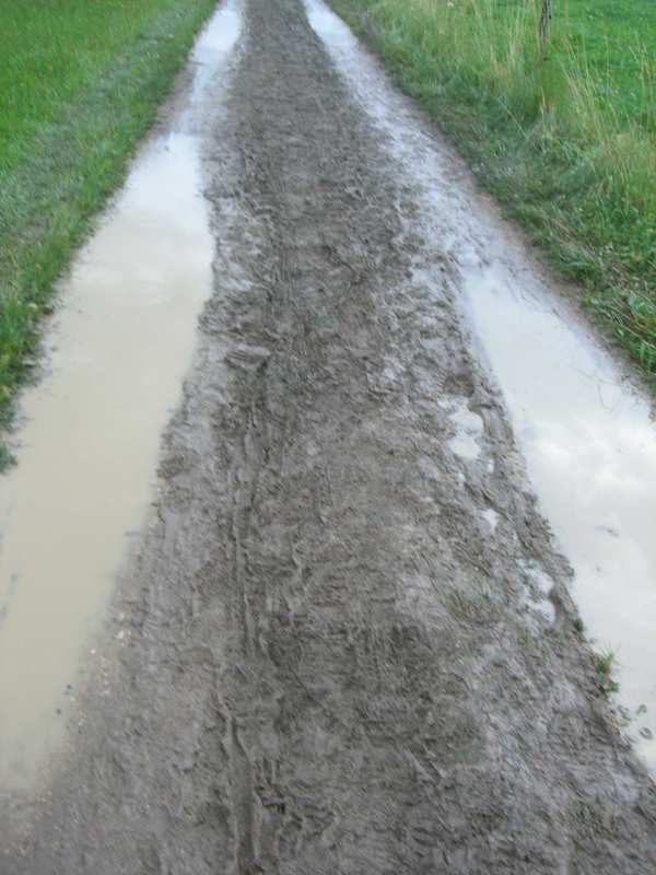 In Biel wird ja viel auf Straße gelaufen. Aber eben nicht nur. So ging es auch über Wege durch Felder. Diese waren mit etwas Windschief verlegten Betonplatten befestigt. In trockenen Tagen eine Quelle für stolperer, in Zeiten des großen Regens kamen die Läufer in den Genuss von Kneipp Anwendungen. Einige Pfützen waren Knöcheltief.