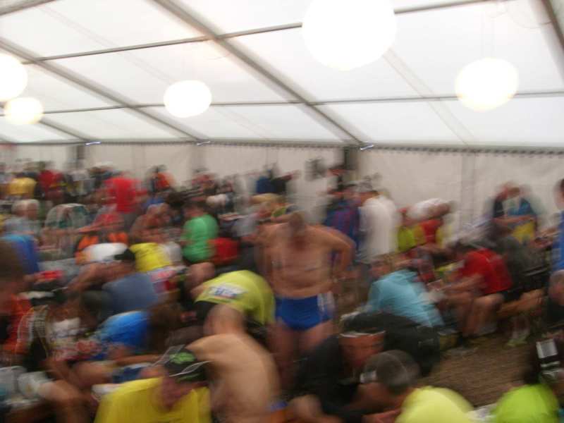 OK. Zurück zum eigentlichen. 22:00 Es ging los. Die 1.5km Fußmarsch vom Umkleidebereich zum Start konnten wir trocken absolvieren. Den Nachmittag über hatte es nämlich intensiv geregnet. Es keimte ein wenig Hoffnung in mir auf, dass auch der Lauf trocken sein würde.