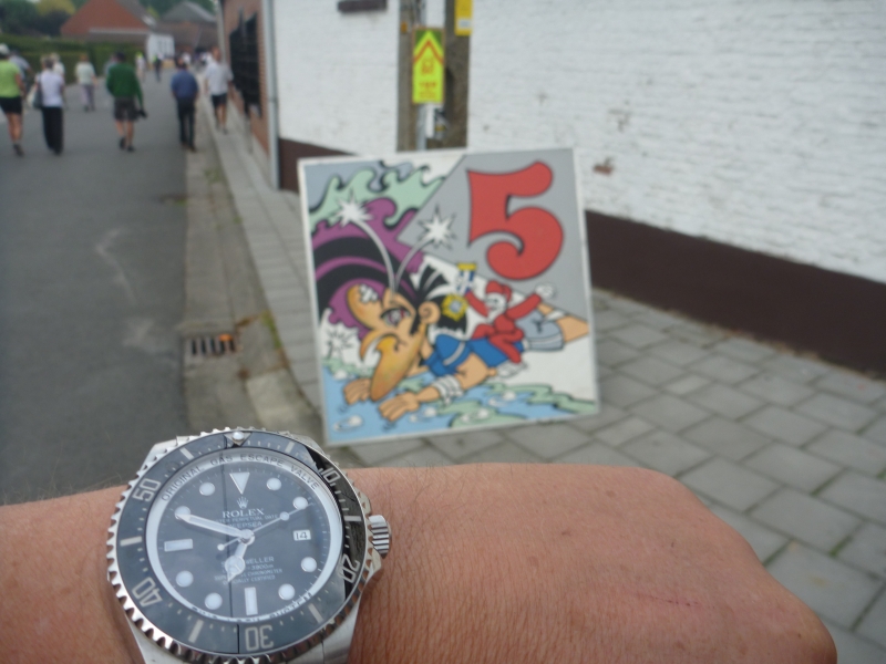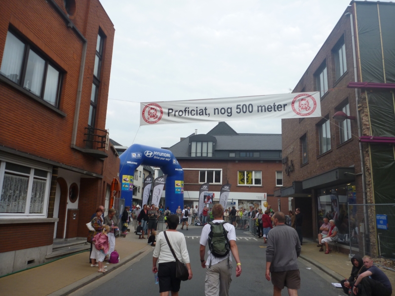 Wir wunden uns durch den Ort um dann schnell an den Bach, äh Fluß, äh Schelde zu gelangen. Eine platte Sache. Die Wanderwurst hatte sich bereits gestreckt und man konnte eine persönliche Atemzone von ca. 20cm reklamieren. Die Sache wurde also luftiger. Erneut verschlugen mir die Becherbatterien an den Tränken die Sprache. Das ist schon einmalig. Nun gut, vielleicht braucht es das auch. Wir waren ja recht weit vorn, zumindest vorn gestartet und es würden noch viele tausend Wanderer kommen. So schnell füllt man eben keine Becher. Da ist Planung alles. Es waren wohl wieder so um die 10000 Starter. Das ist schon eine große Menge. Besonders nachdem ich in diesem Jahr bei Event gestartet bin wo ich alle Starter namentlich kannte und zum abzählen die Finger einer Hand reichten. Könnte ich das hier wäre a. eine Teilnahme bei Wetten das möglich und b. eine Maniküre wahnsinnig teuer!
