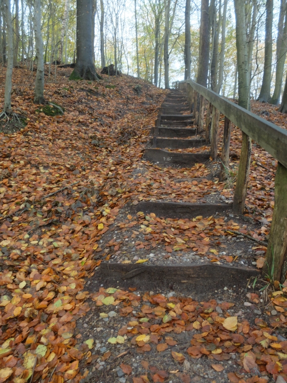 Nach dem Platten Land kommen auch Berge, also Hügel, Treppen, viel Laub und manche Aussicht. So sollte das sein. Aber es
