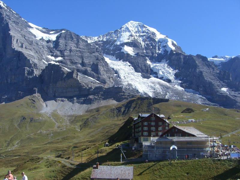 Wir näherten uns genüsslich Wengen. Um uns herum waren noch ein paar andere. Aber es war schon leer. In Wengen lagen keine Matten zur Zeitnahme mehr, die Zuschauer waren weg. Kräfte mäßig hätte man noch über eine Wanderung zur Scheidegg nachdenken können. Aber die Sorge um einen dann eventuell nicht mehr vorhandenen Kleiderbeutel und einen bereits eingestellten Bahnbetrieb nötigten uns in die Zahnradbahn einzusteigen.